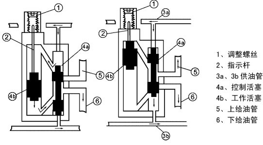 4、帶運(yùn)動(dòng)指示調(diào)節(jié)裝置的分配器(SSPQ2型),其給油量的調(diào)整,應(yīng)在指示桿縮回去的狀態(tài)下旋轉(zhuǎn)限位器的調(diào)節(jié)螺釘,根據(jù)潤滑點(diǎn)的實(shí)際需要在****和最小給油量范圍內(nèi)進(jìn)行調(diào)整。