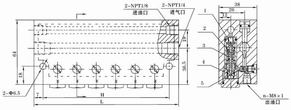 | AVE型油氣分配混合器,它是一種由鋁合金材料制造的容積定量式結(jié)構(gòu)的油氣分配混合器,設(shè)有一個(gè)進(jìn)油口、一個(gè)進(jìn)氣口、1~8個(gè)油氣出口。主要適用于單線卸壓式油氣潤(rùn)滑系統(tǒng)中。 |